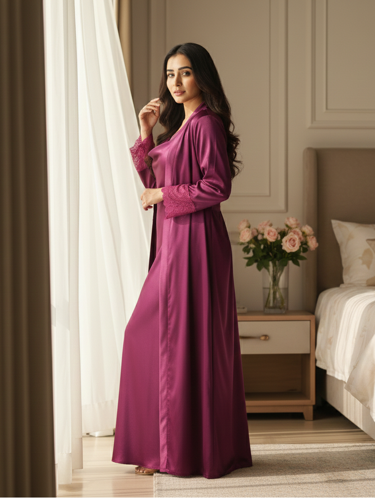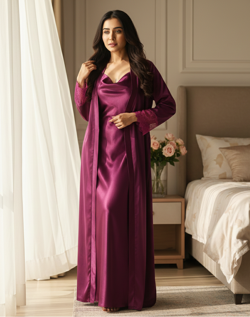 Our bridal trousseau nightwear blends rich satin silks, luxe lace and signature prints. Timeless elegance for every brides special moments.
