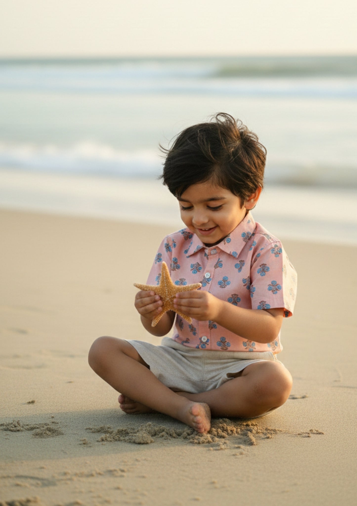 The Coral Bloom Kids Shirt brings a fresh, playful charm to warm-weather dressing with its soft coral tone and delicate floral print. Designed with a classic collar and front button-down closure, this short-sleeve silhouette offers an easy, polished look that feels effortlessly relaxed. The straight hem allows comfortable, untucked styling, making it ideal for beach walks, holiday outings, or casual summer days. Light, breezy, and thoughtfully detailed, this printed kids beach shirt blends comfort with a refined seasonal aesthetic.