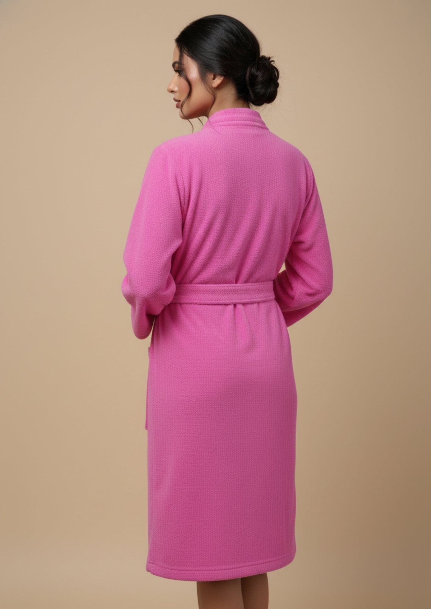 Indulge in comfort with a touch of elegance in the Rose Petal Luxe Bath Robe. Crafted in a soft, textured fabric, this robe wraps you in gentle warmth while remaining light and breathable—perfect for both relaxed mornings and unwinding evenings.