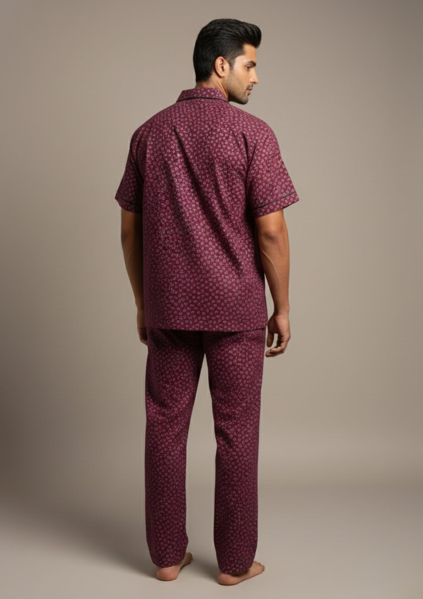 Burgundy Heritage Printed Night Suit