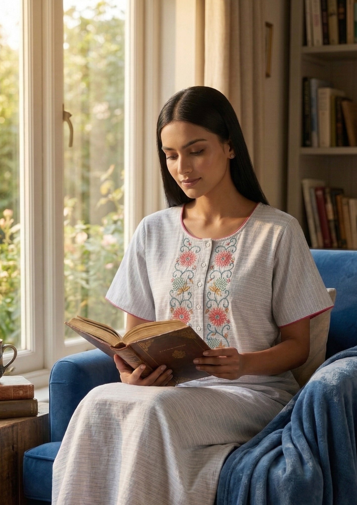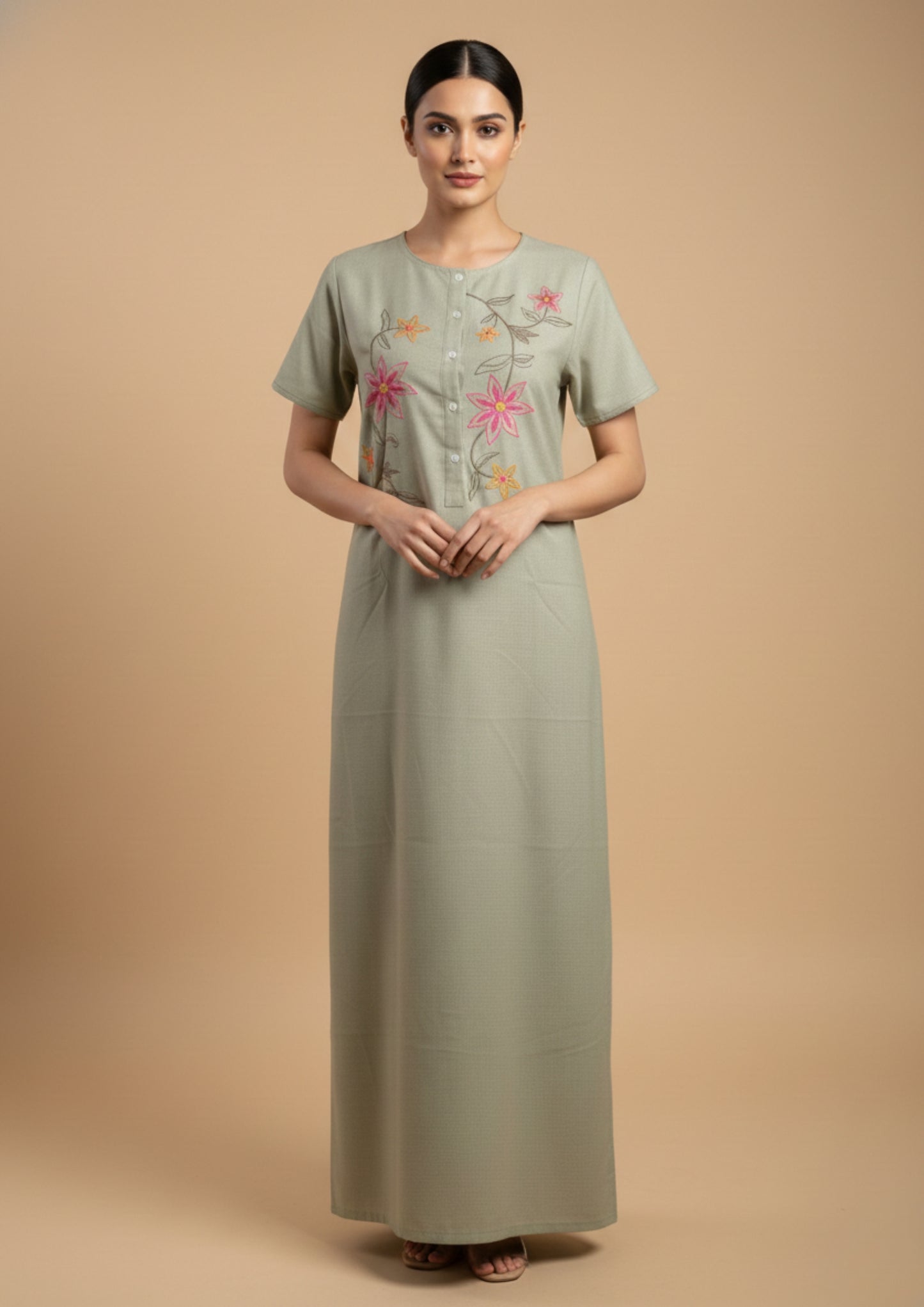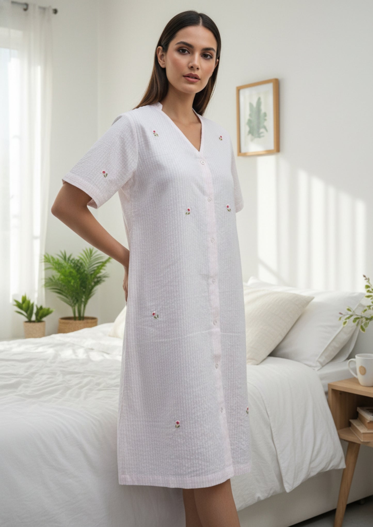 Ivory Bloom Machine-Embroidered Cambric Nighty