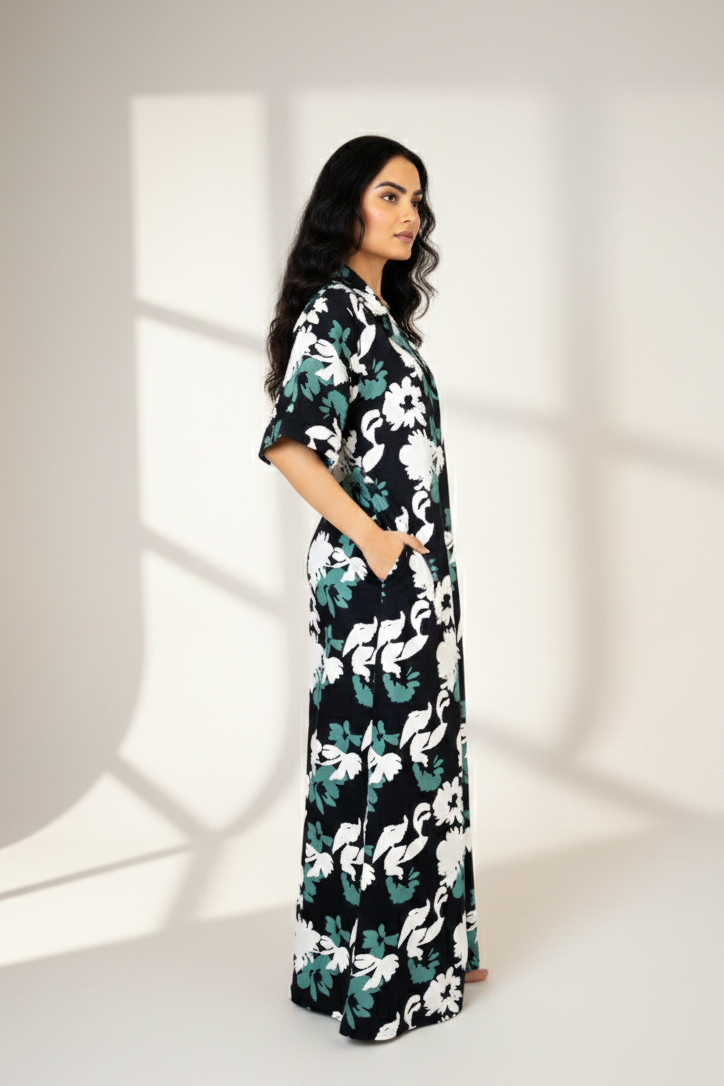 Regular price ₹ 1,295.00Ease into everyday elegance with this printed cotton nighty, designed with comfort and subtle charm in mind. The structured collar adds a tailored touch, while the floral print keeps things light and stylish. Crafted from breathable cotton, it ensures cool comfort through the night or while lounging.