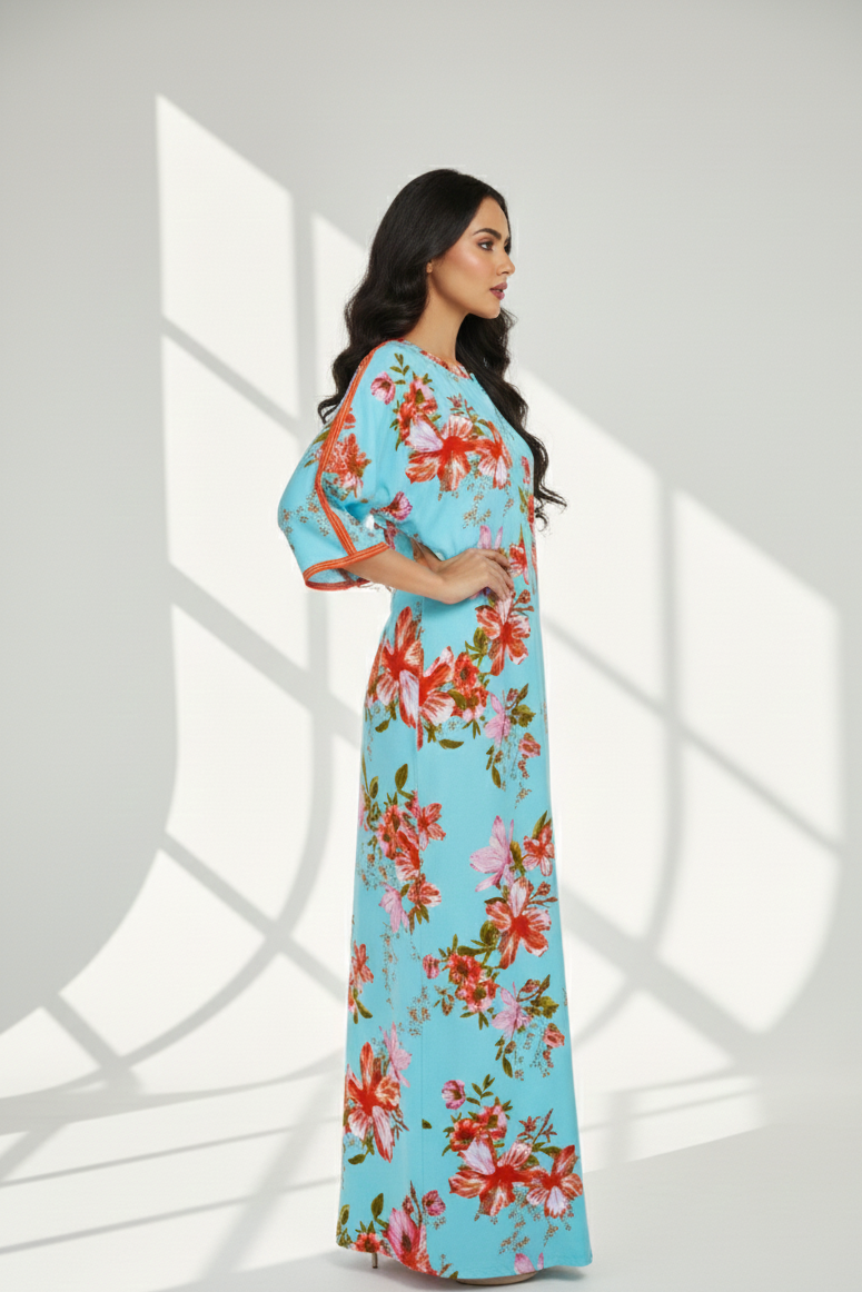 Bask in the beauty of bold florals with the Tropical Rouge Nighty. Crafted in airy rayon, it’s your go-to for breathable comfort and eye-catching style. The rich red print blooms against a cool aqua base, making it perfect for slow mornings, breezy evenings, or just lounging in a little extra colour.