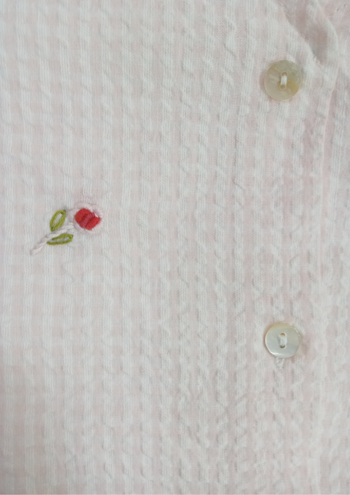 The Petal Stripe Sleep Shirt combines understated elegance with effortless comfort in a relaxed, easy-to-wear silhouette. Designed with a soft V-neckline and a clean button-down front, it features delicate hand-embroidered floral motifs that add a subtle handcrafted touch. The gentle vertical stripe texture brings quiet dimension to the design, while the relaxed short sleeves and above-knee length create a comfortable, breathable feel—perfect for restful nights and slow, easy mornings.