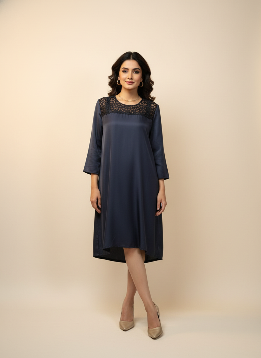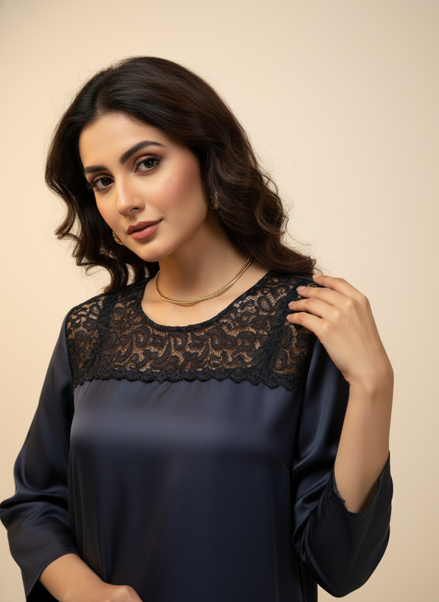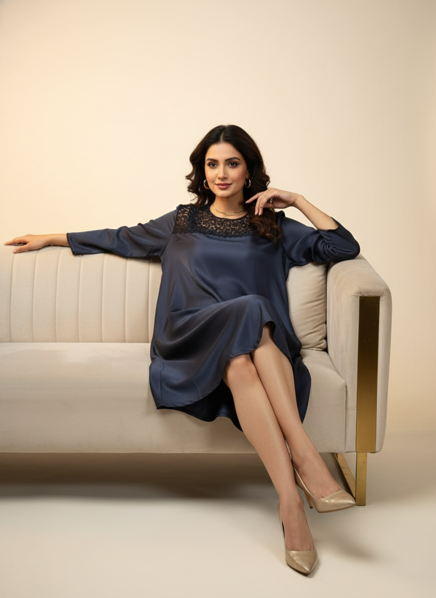 Midnight Grace – Satin Lace Trim Sleep Dress