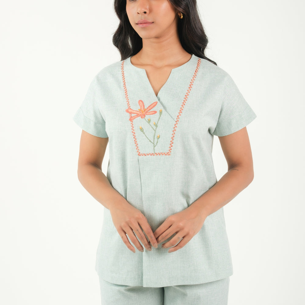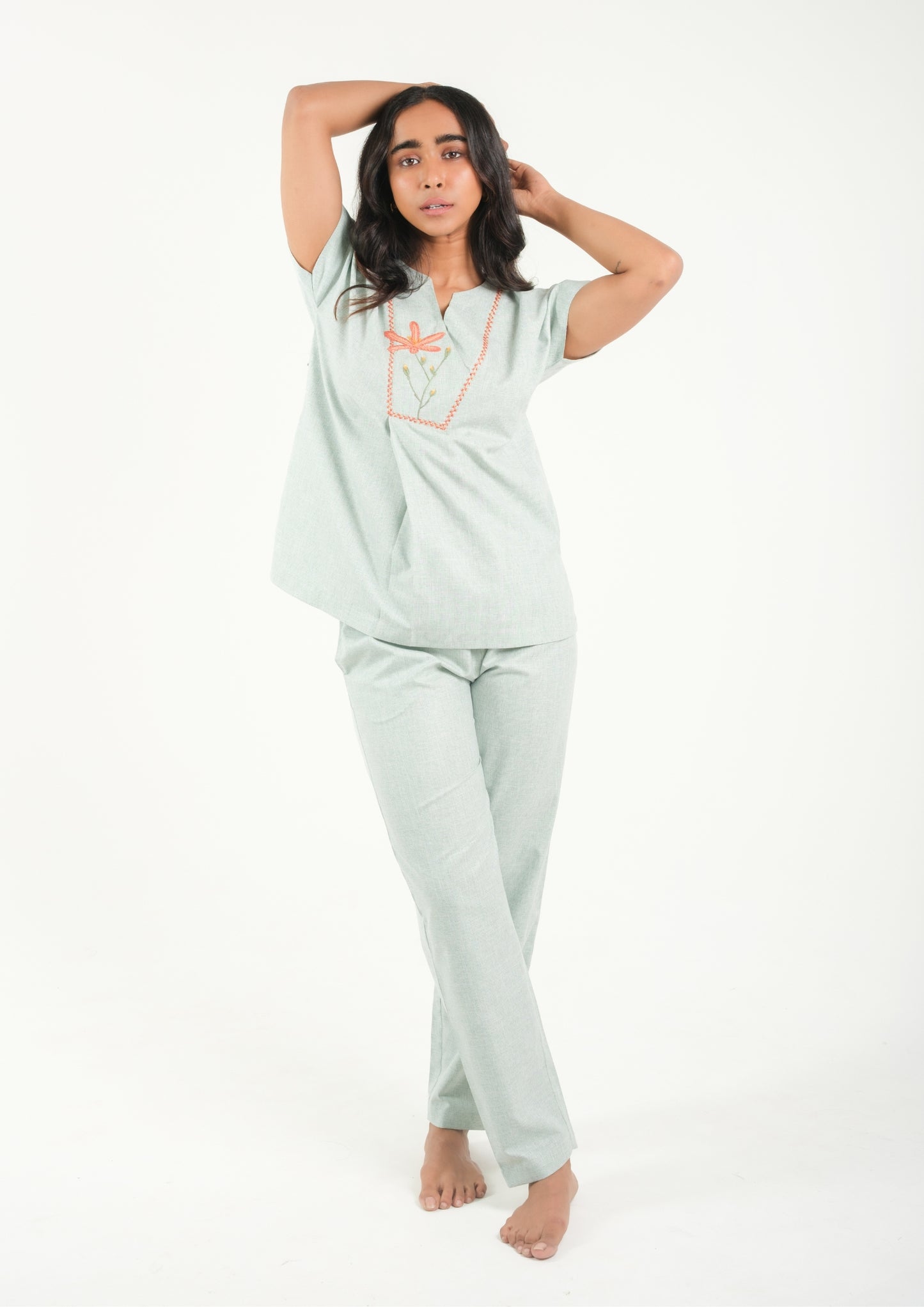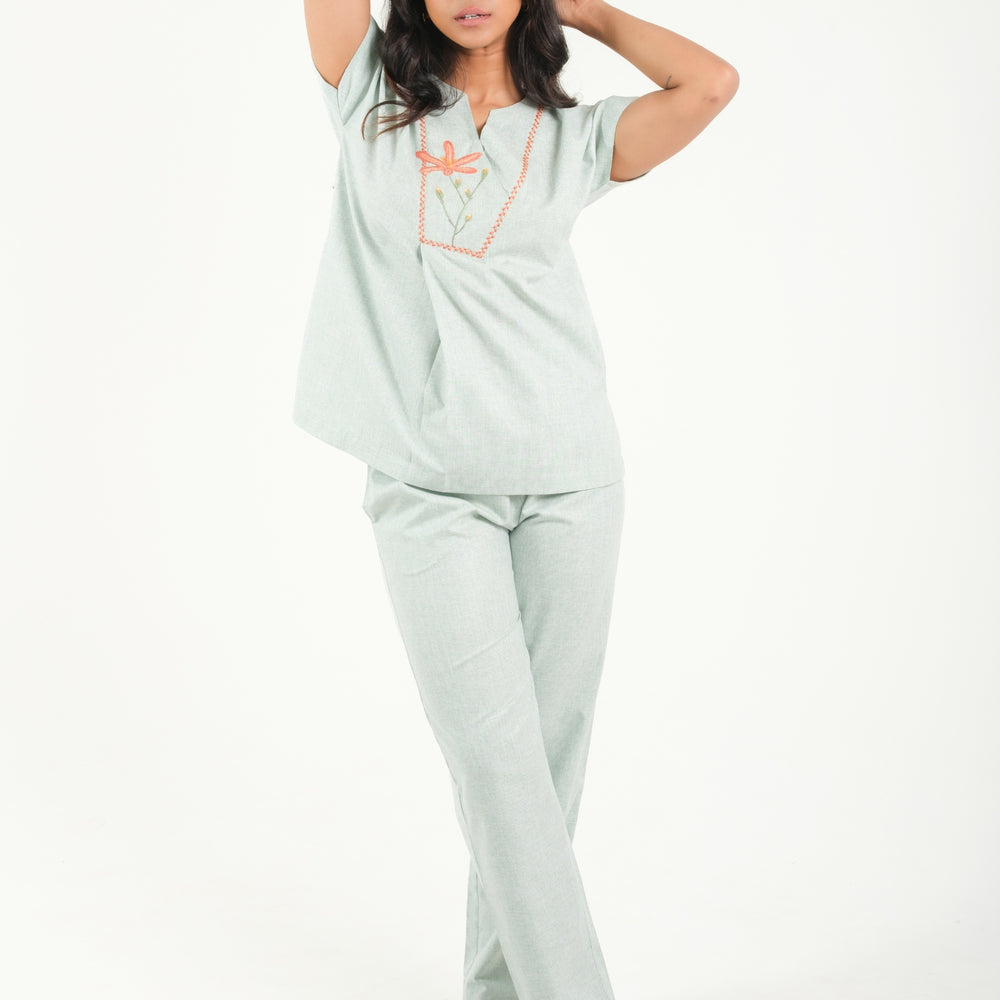 Serene Bloom – Hand Embroidered Night Suit