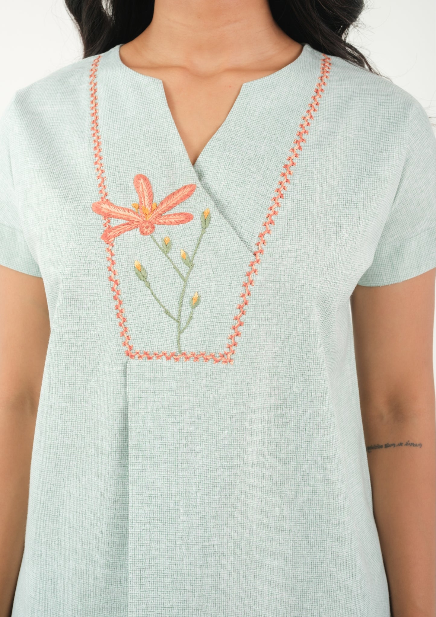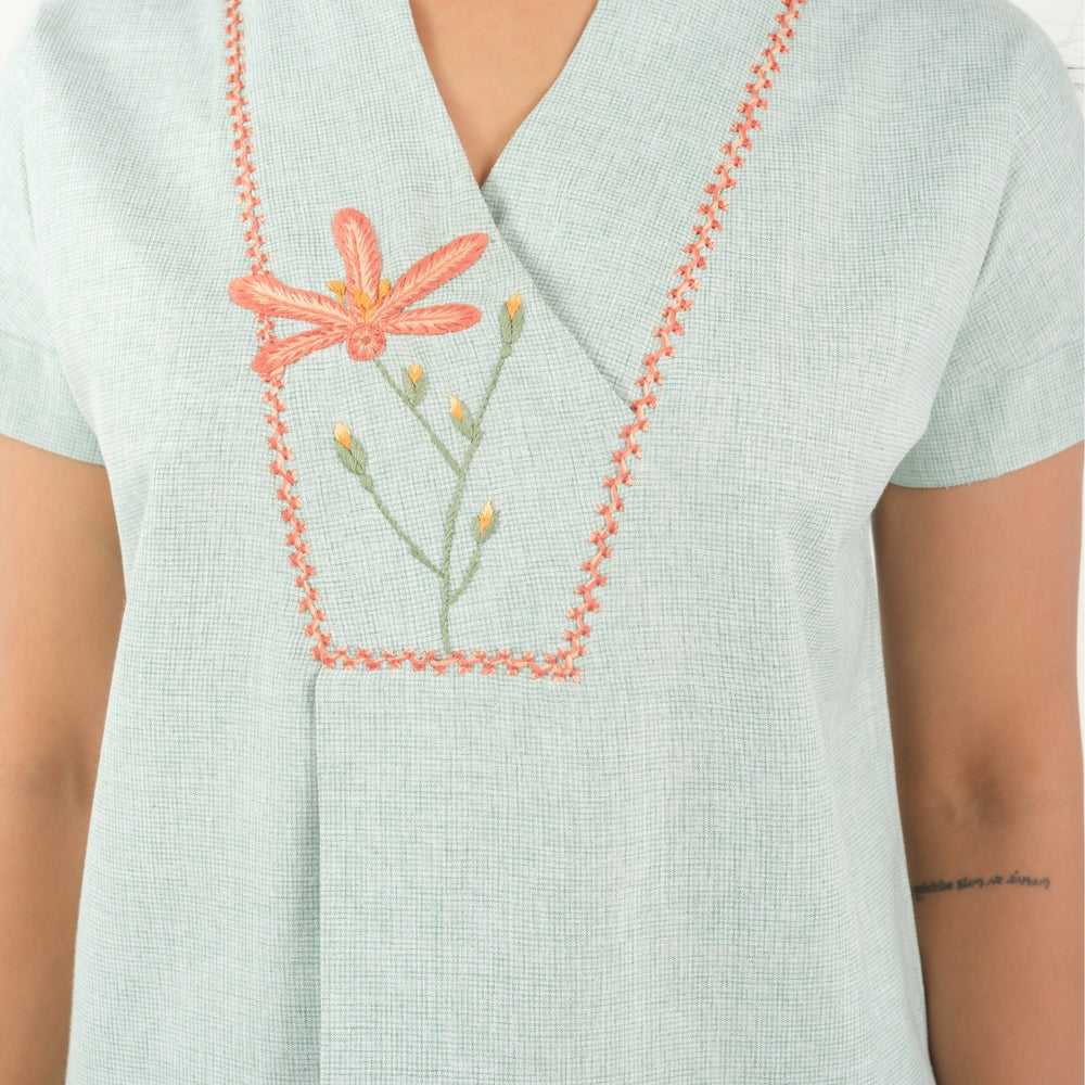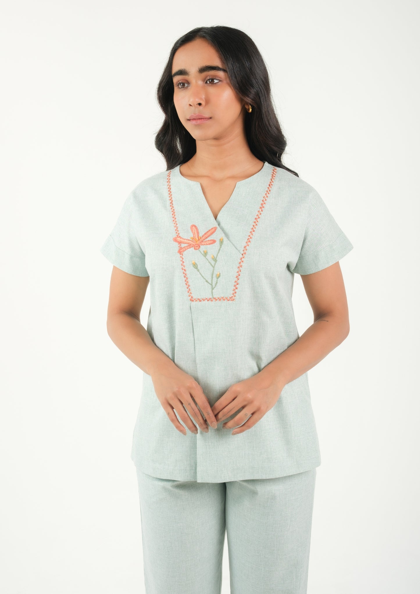 Serene Bloom – Hand Embroidered Night Suit