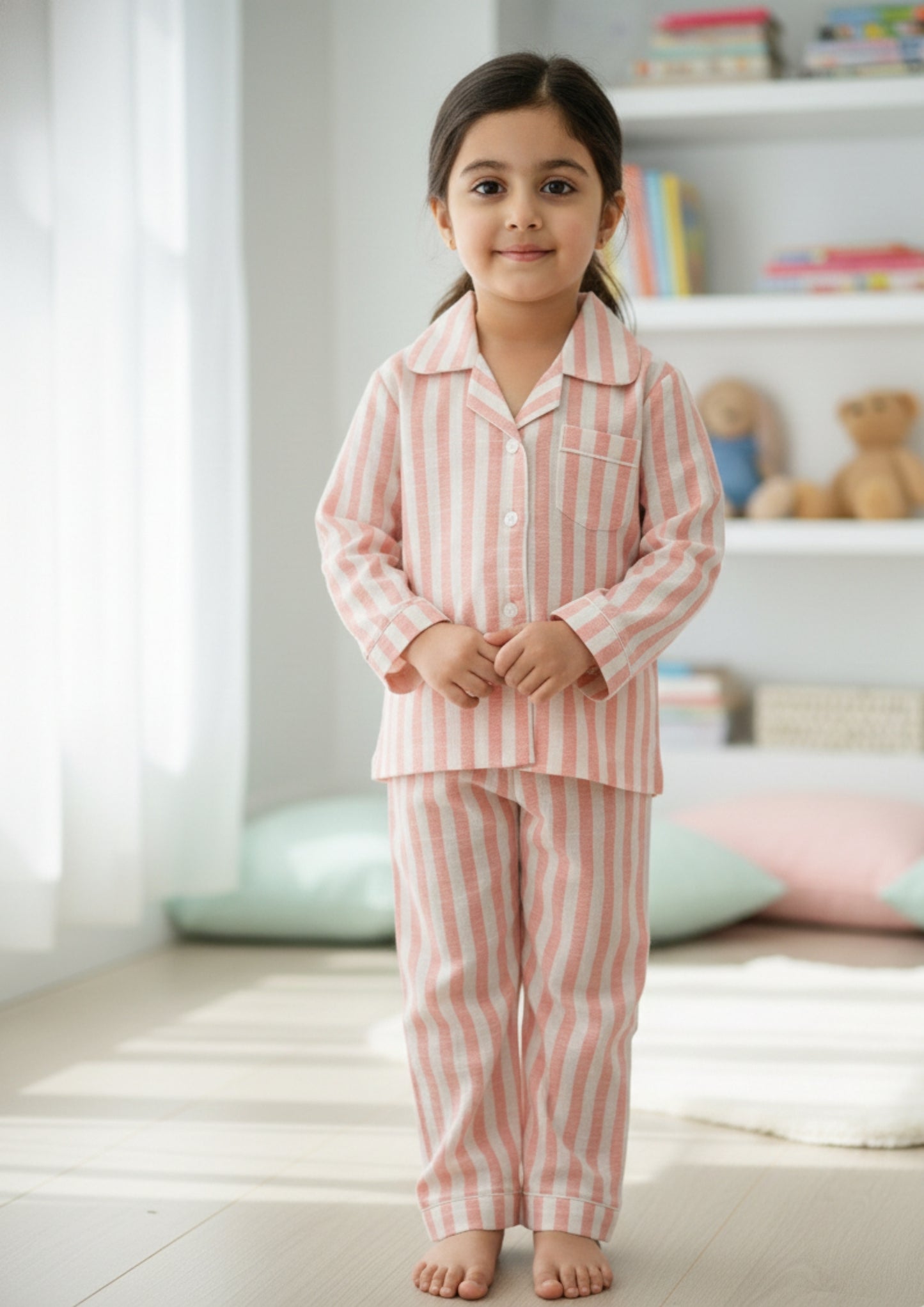Blush Stripe – Unisex Cotton Night Suit