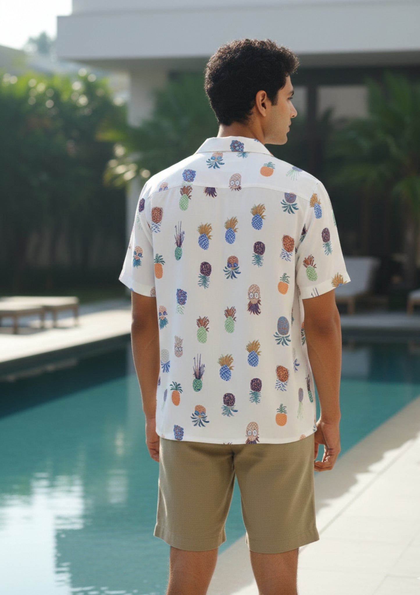 Turn up the tropical charm with this Pineapple Printed Beach Shirt. Designed for the man who loves playful prints and breezy comfort, it pairs island-inspired motifs with an easy, relaxed fit. Whether you wear it open over swim shorts or buttoned for a casual holiday look, this shirt adds instant vacation energy to your wardrobe.