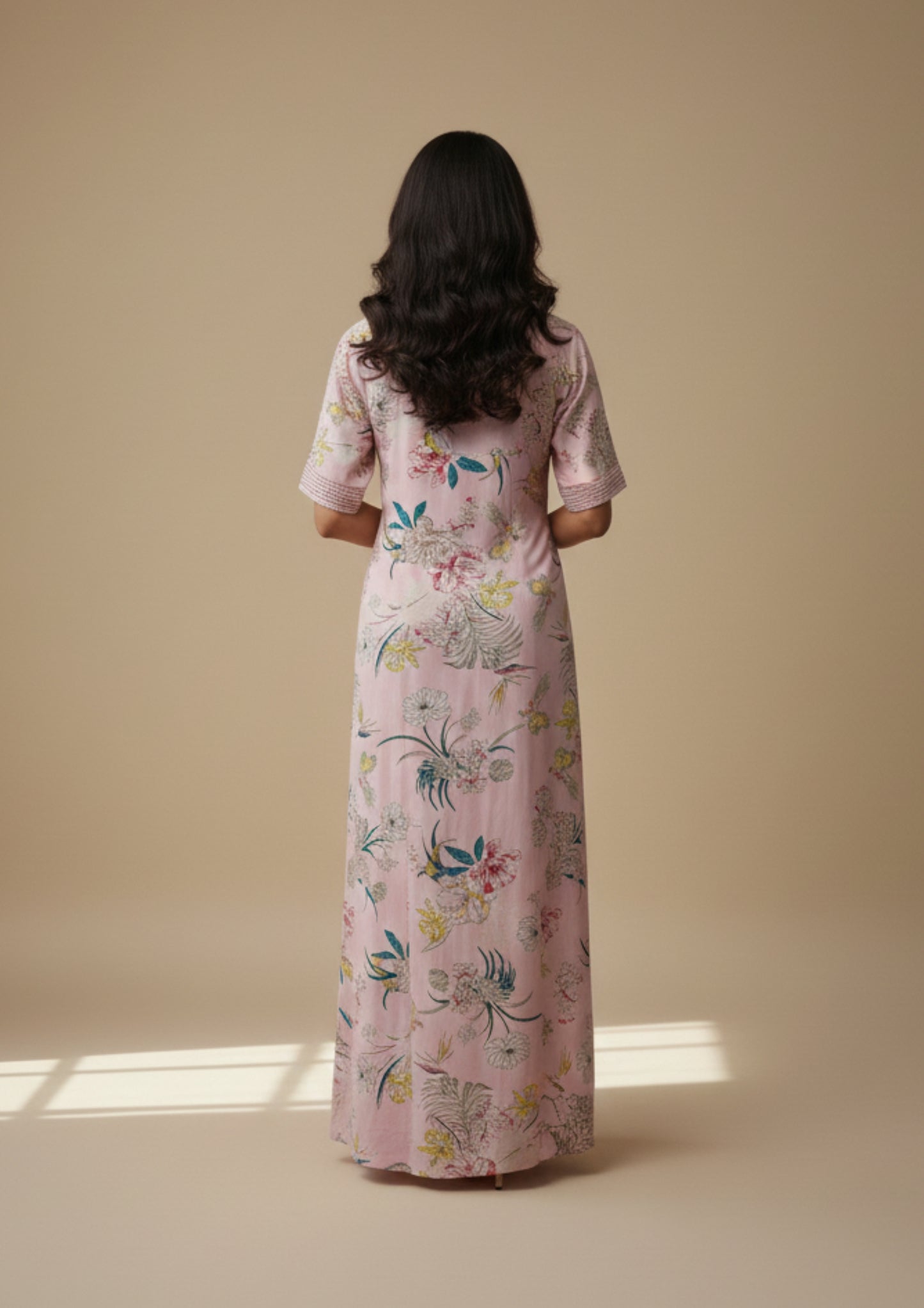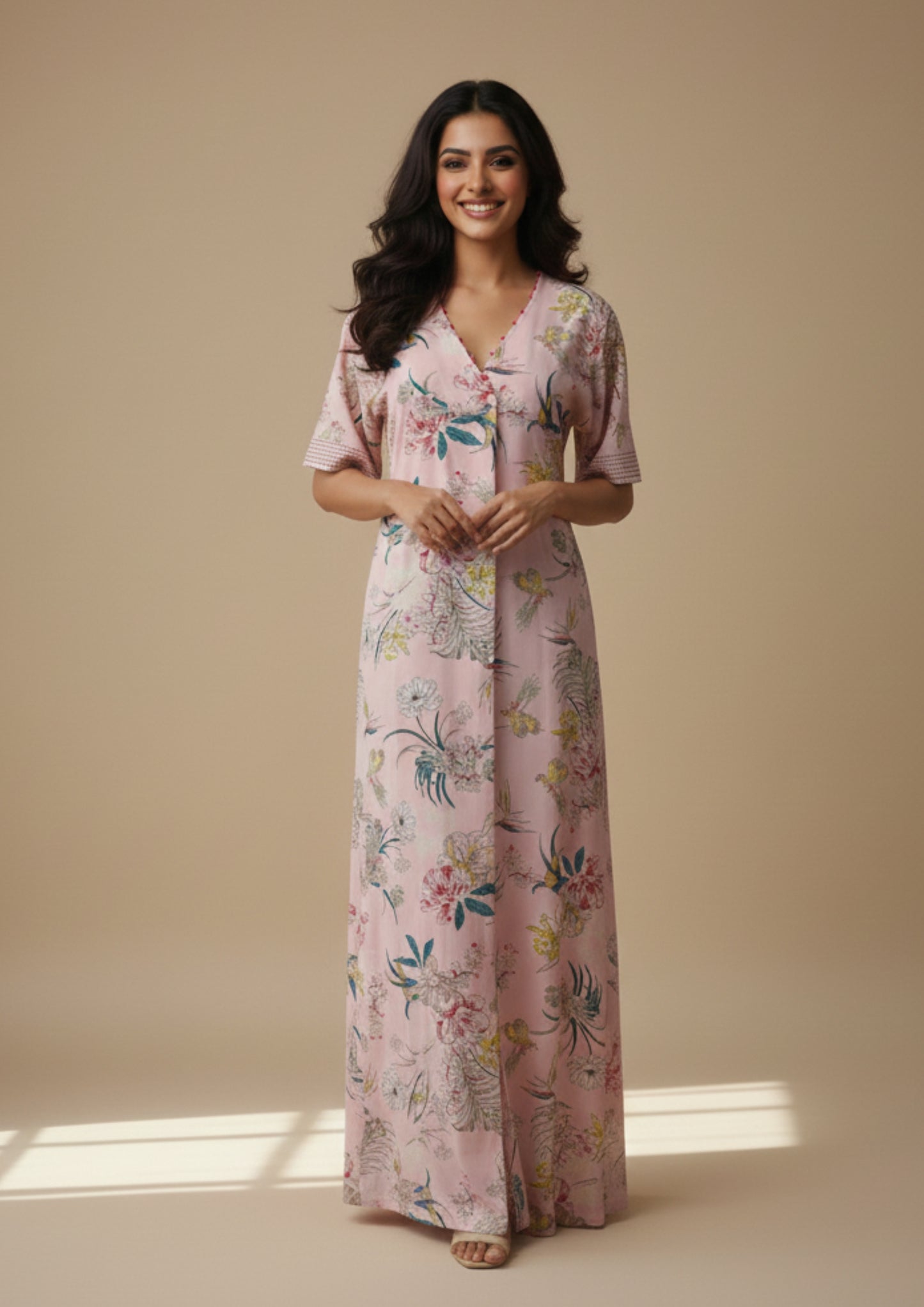 Blossom Whisper Rayon Hand-Embroidered Nighty